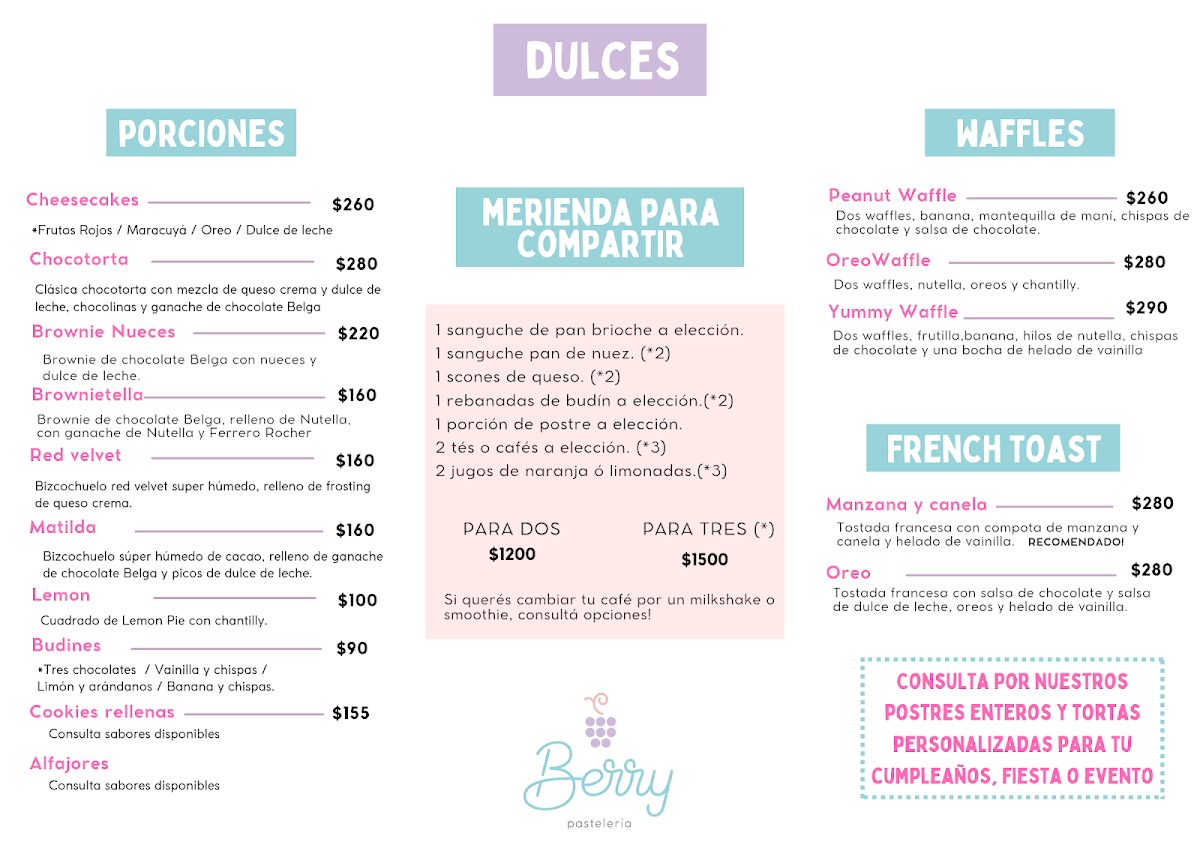 Don’t miss out on their creative waffles—the Peanut Waffle is a standout, topped with banana and rich chocolate sauce. Finish your meal with their recommended French Toast featuring apple and cinnamon, served with vanilla ice cream. With friendly service and a welcoming vibe, Berry Pasteleria is truly a gem worth visiting!